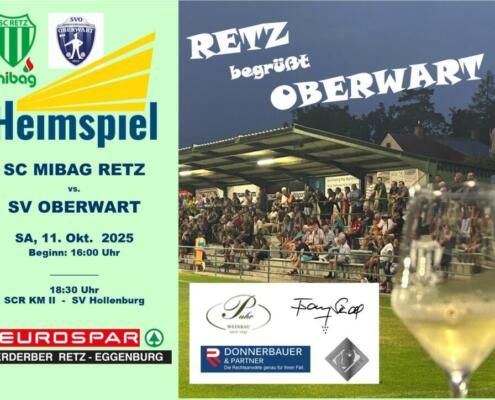 Am kommenden Samstag, den 27. Sept. 2025 empfängt der SC MIBAG RETZ um 16:00 Uhr im Rahmen vom Retzer Weinlesefest den FC MARCHFELD zum nächsten Heimspiel. Nach dem Auswärtssieg gegen Elektra wollen wir auch vor eigenem Publikum den ersten…