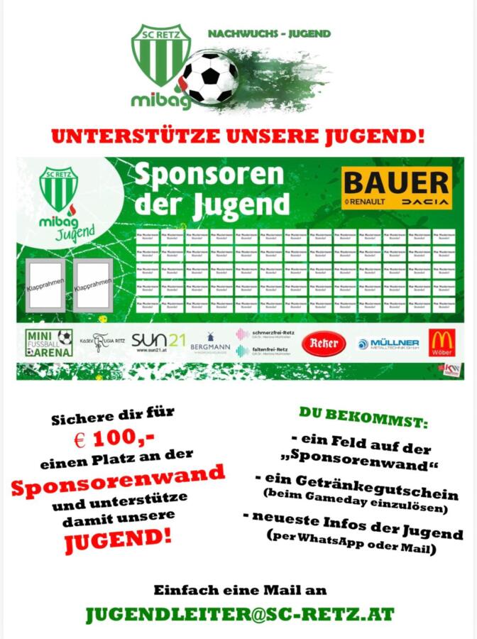 Wir freuen uns auf zahlreiche Unterstützung. Bei Fragen sende bitte ein Mail an jugendleiter@sc-retz.at
